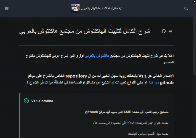 رسميا اصدار نسخه V1.1-Catalina من شرح تثبيت الهاكنتوش من مجتمع هاكنتوش بالعربي فيها : تصحيح ترتيب الصور في صفحه AMD التي تسبب فيها موقع gitbook اضافه خيار التحميل مباشره لكيكستات متعدده وتغير روابط الكيكستات الى صفحه Release مباشره قائمه التغيرات كامله على GitHub : https://github.com/ARhackintosh/ARtutorial/releases/tag/V1.1 رابط الشرح : https://arhackintoush.gitbook.io/artutorial/