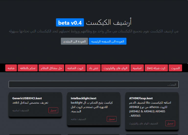 رسميا افتتاح ارشيف الكيكست مع اول اصدار تجريبي V0.4b وظيفه ارشيف الكيكست هي جمع جميع الكيكستات التي تحتاجها في مكان واحد مع وصف بالغة العربية لتسهيل عمليه ايجاد الكيكستات الضروريه للهاكنتوشر العربي ويحتوي الارشيف حاليا على 35 كيكست مع وصف يصف عمل الكيكست ورابط تحميلها من المطور مباشرة نرحب باي اقتراحات لاضافه الكيكستات على قسم ارشيف الكيكست في المنتدى