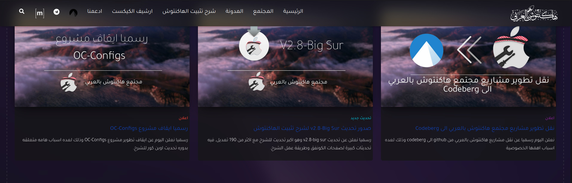 أنا توقفت عن استخدام الهاكنتوش منذ اكثر من سنة, و انشغلت في مشاريع أخرى و دراسة, ولم اعد استطيع اجد الوقت والقدرة الكافية لإبقاء شرح تثبيت الهاكنتوش محدث بشكل دوري, وهذا سبب انقطاع التحديثات, وعدم صدور تحديث V3-Monterey لدعم macOS Monterey, وهذا سبب قلة التحديثات على أرشيف الكيكست, و قلة المواضيع الجديدة على المجتمع.